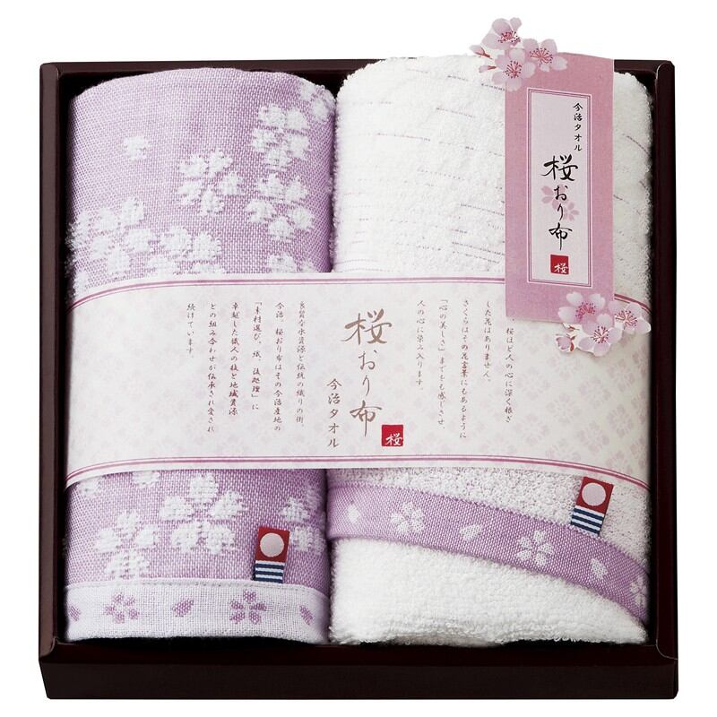 桜おり布 タオルセット パープル IS8620 内祝 お返し引出物に