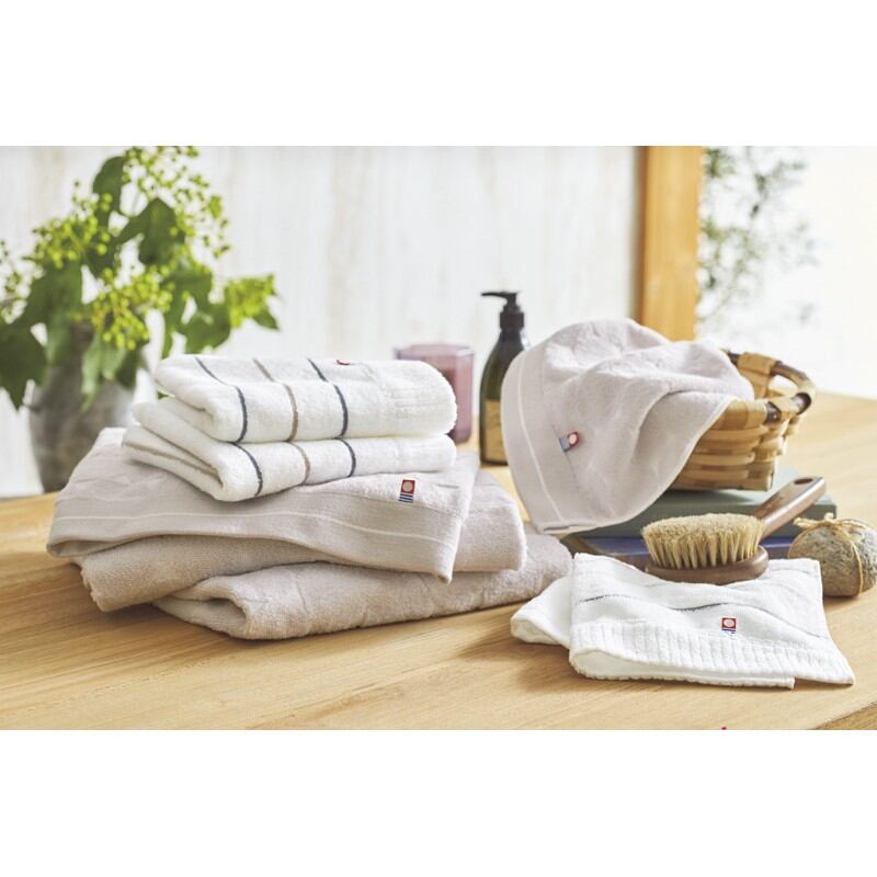 連続する丸い糸のラインで、つながる思い出を表現。立体感や高級感があるジャカード織りの優しいタオルです。