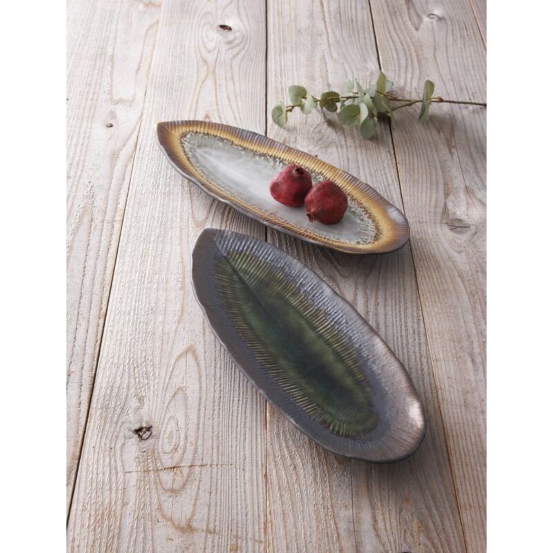 深みのある色合いと自然な木の葉の形をしたお皿はテーブルをモダンな雰囲気に包んでくれます。