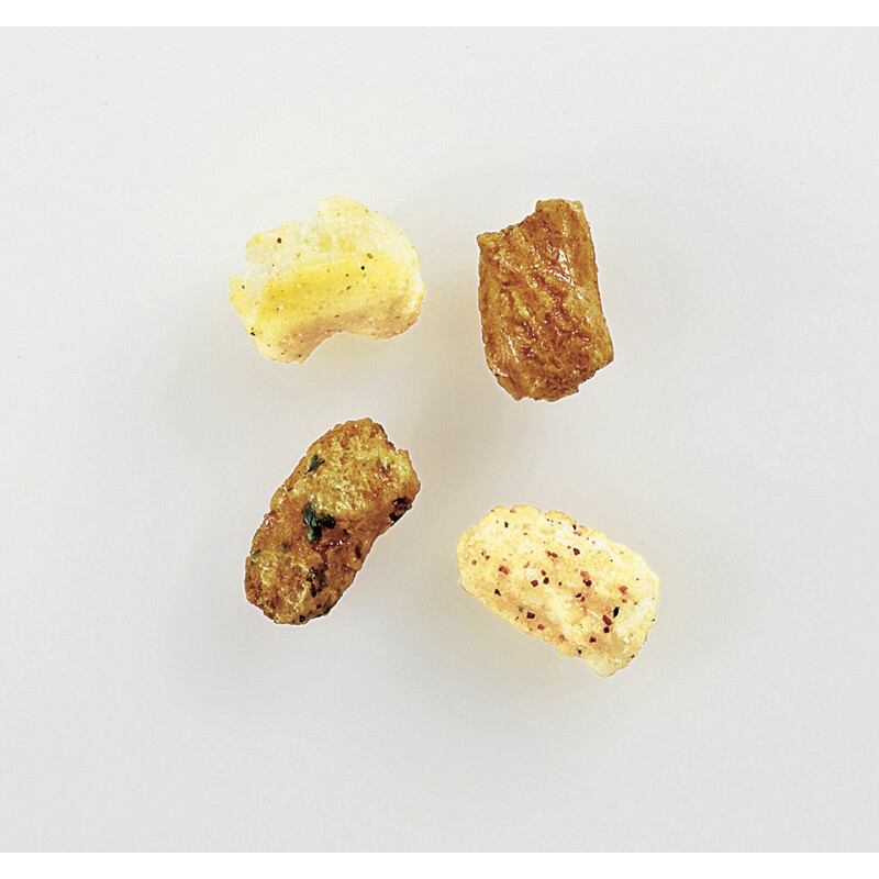 商品内容:かりんとう(さつまいも・黒糖)40g・ざらめ千枚40g・彩りあられ40g・丸餅(醤油・サラダ)40g×各1