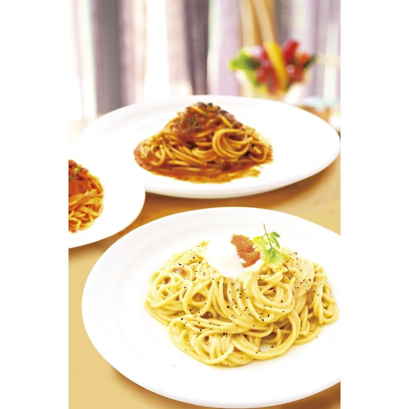 商品内容:スパゲティ130g×2、パスタソース(ナポリタン2人前)250g・自然色パスタ(コンキリエ)60g×各1