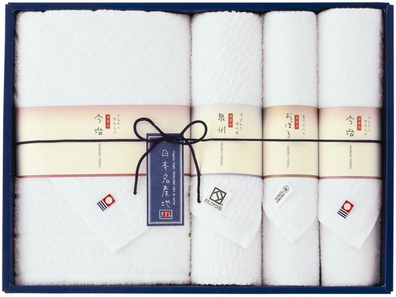 タオルの3大生産地、今治・泉州・三重(おぼろタオル)の品質、吸水性の良い実用的なタオルをギフトにしました。