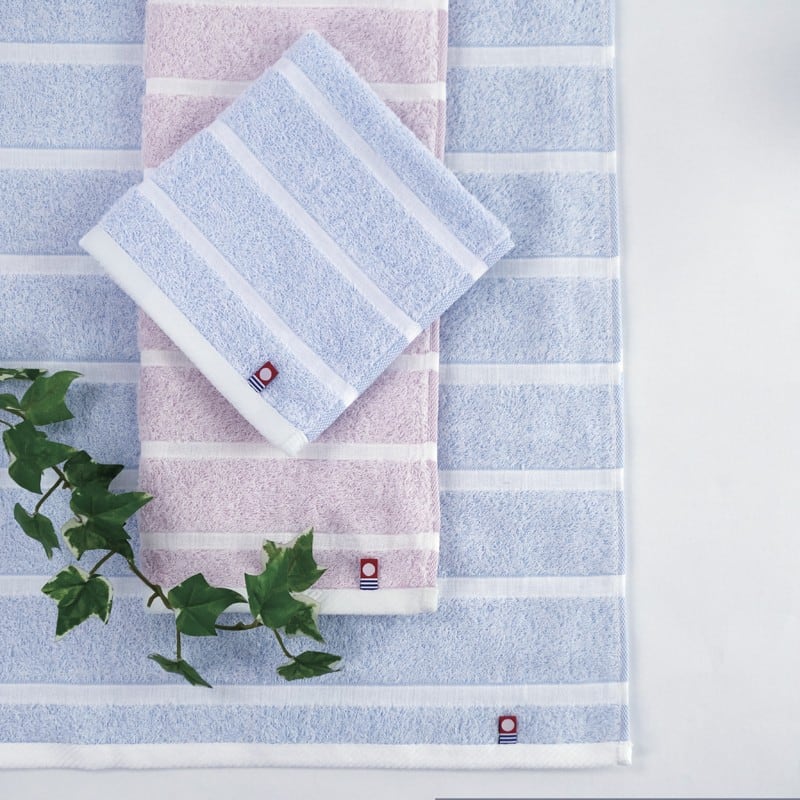 40単糸をパイルに使用し、ふんわりとしたやわらかなタオルになっています。細番手の独特な風合いが肌に優しさを感じさせます。パイルの隙間から見える淡い色合いが、ぼかした色調を感じさせ、風合いと色合いに特別な表現を与えています。