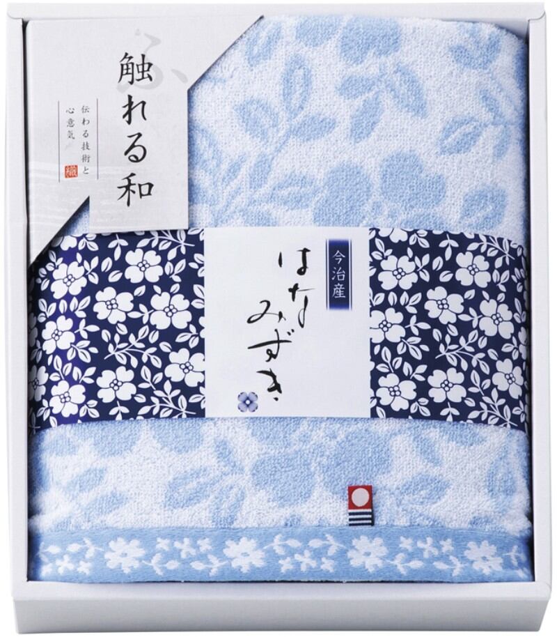 今治タオルブランド商品認定マークは独自基準をクリアした商品です。商品名の「はなみずき」の花言葉は、返礼。愛らしい花柄に感謝の思いを託しました。