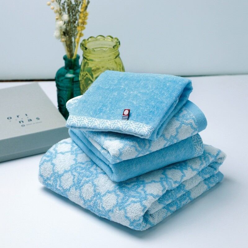 モロッカンスタイルのタイルをモチーフにした爽やかでラグジュアリーな雰囲気のあるデザイン。機能性と優しい肌触感が特徴の今治タオルです。