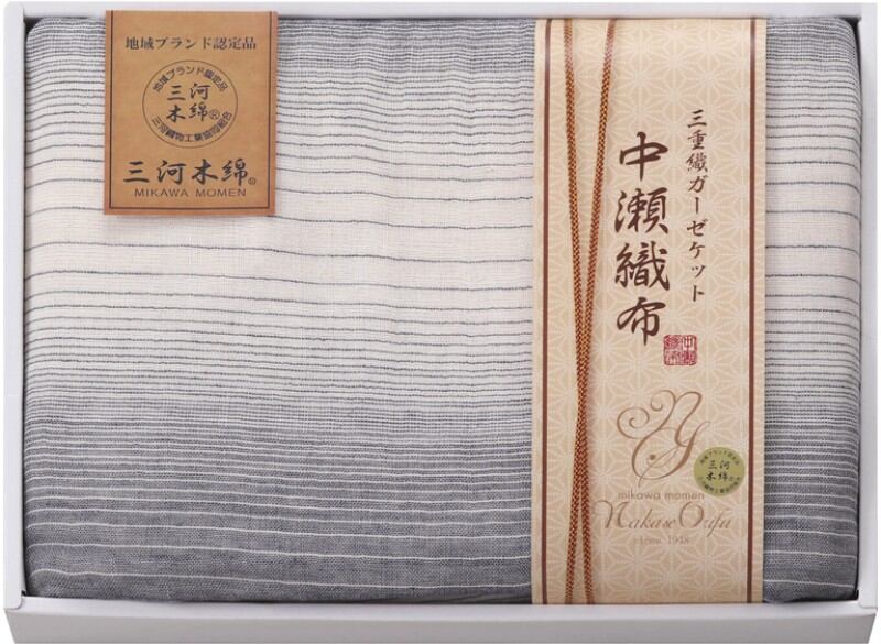 三河木綿の歴史を年輪に見立て、涼しげな柄に仕上げた蒲郡産の三重織ガーゼケットです。洗うほどにふんわり、肌にやさしいガーゼの風合いをお楽しみください。