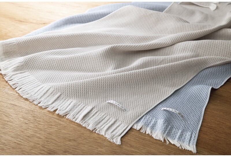 ハニカム蜂の巣構造のひざ掛けは通気性・速乾性に優れ、爽やかな使い心地です。