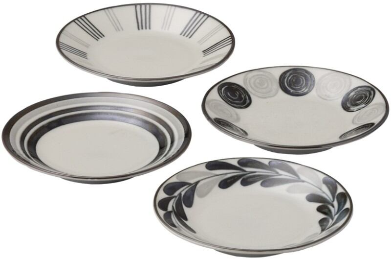 モノクロのシンプルなデザインのお皿は和洋問わずお使いいただけます。