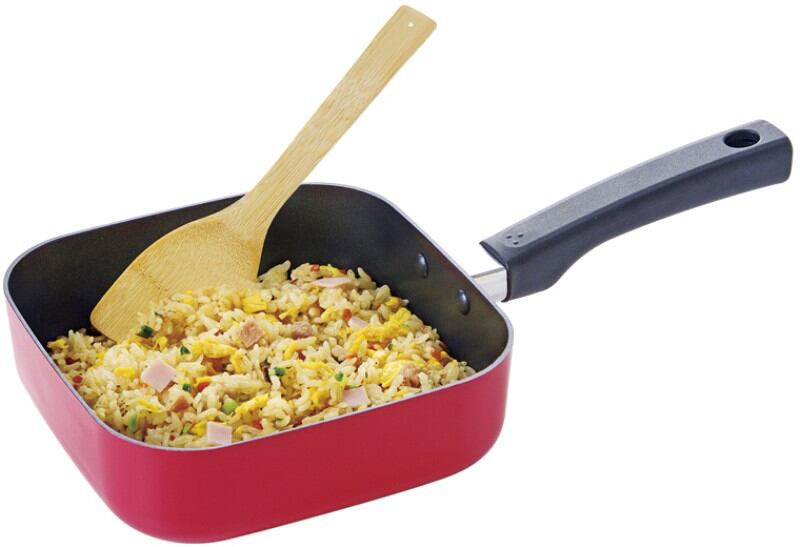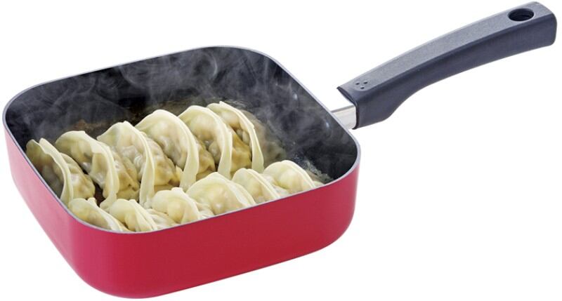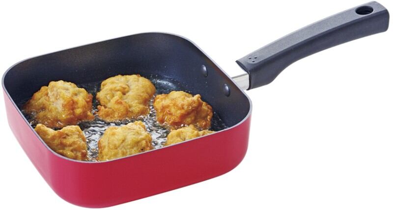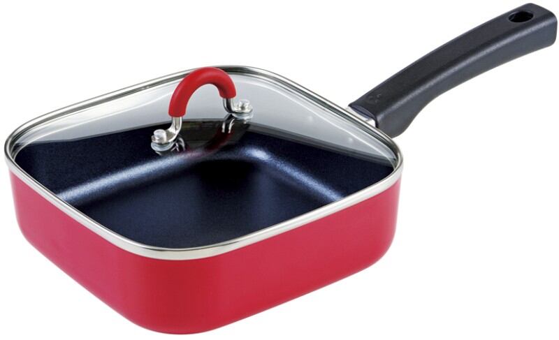 軽く、お手入れ簡単なふっ素樹脂加工を施したスクエアパン。調理中、鍋の中が見えるガラス蓋付。