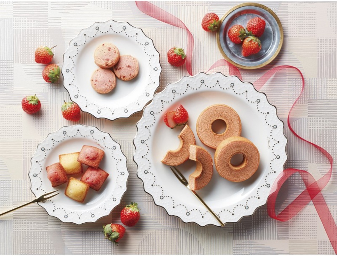 国産小麦粉とあまおう苺濃縮果汁を使用し、苺の風味と味わいを生かして一層一層丁寧に焼き上げたバウムクーヘンと、ひとくちサイズのしっとりとした食感で仕上げ、トンネルオーブンを使用することによりふんわりと焼き上げたフィナンシェ、ほろろとした食感とフリーズドライのいちごを使用したざくっとした食感のアイスボックスクッキーの詰合せです。