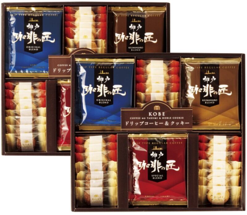 神戸珈琲の匠 オリジナルにブレンドした簡易ドリップコーヒーとクッキーの詰合せ。洋菓子の街、神戸よりお届けするコーヒーとお菓子のセットです。