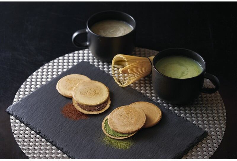 宇治抹茶と焙じ茶の香り高いオーレ、サクッと軽いゴーフレットは抹茶とチョコレートのクリームをサンドしました。皆が集うカフェタイムにお使いいただけます。