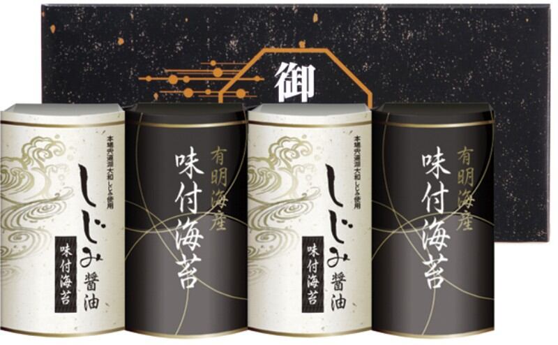 商品内容:しじみ醤油味付のり(8切8枚×2)・有明海産味付のり(8切8枚×2)×各2