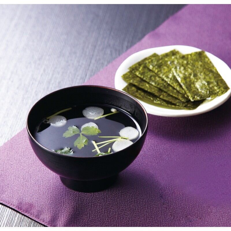 商品内容:有明海苔全型2.5枚(8切4枚×5)×2、永谷園松茸風味お吸い物(2.3g×4)×1