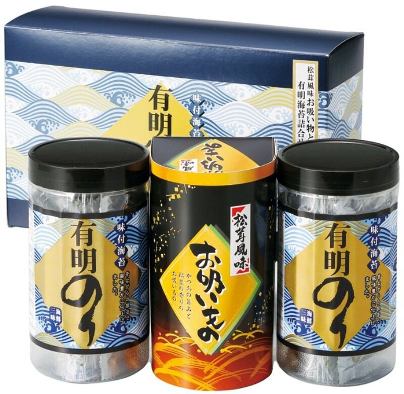 松茸の香りが楽しめる永谷園のお吸い物と有明海の恵みを受けて育った風味豊かな海苔の詰合せです。