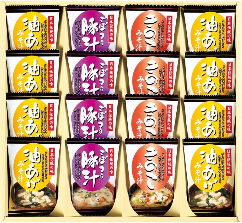商品内容:お味噌汁(油あげ)×8、お味噌汁(きのこ・豚汁)×各4
