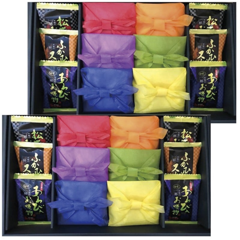 商品内容:新潟県産コシヒカリ150g×10、松茸のお吸物4.2g・ふかひれスープ5.5g・あわび入お吸物4g×各4、笹川流れの塩80g×2