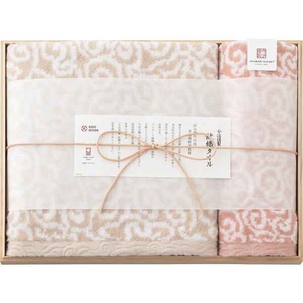 今治謹製 紋織タオル バス・ウォッシュタオルセット(木箱入) ピンク IM7730