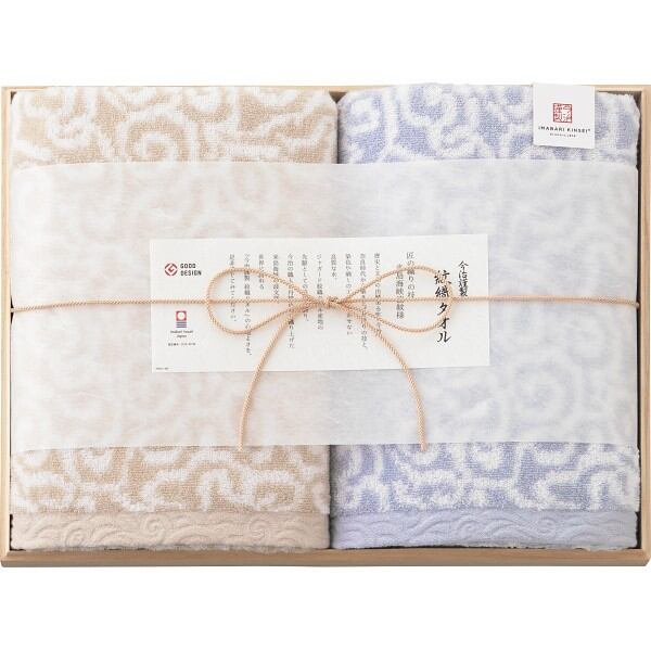 今治謹製 紋織タオル バスタオル2枚セット(木箱入) ブルー