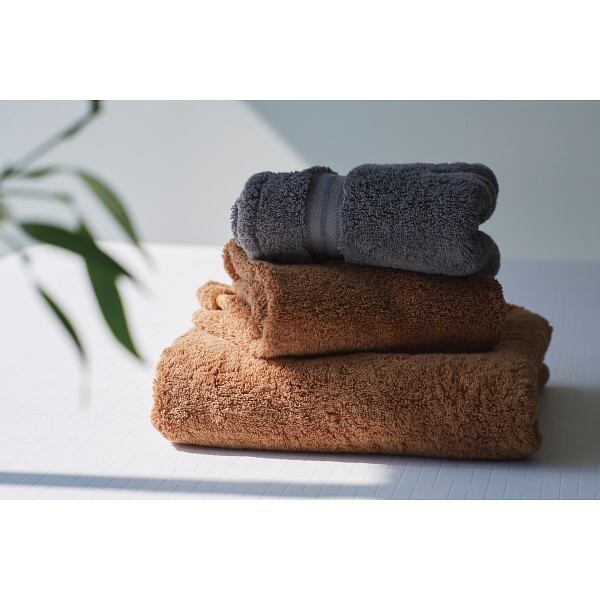 テディベアに抱きしめられているようなもふもふタッチの心地良さでお風呂上りについ手が伸びてしまうタオル。16番甘撚り精紡交撚というスペシャルな糸にこだわり、しっかり厚手のボリュームたっぷりのふっくら感となめらかな肌触り、吸水性に優れた使い心地のどれもあきらめずに作り上げたタオルです。