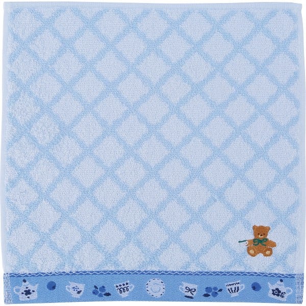 ロッティ 婦人タオルハンカチ チェック×くま刺繍ブルー RTT-64 BL