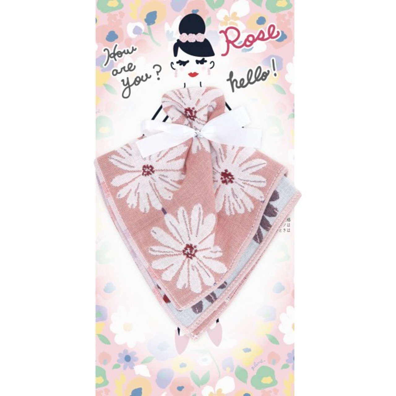 フローラルシスターズ 3重ガーゼハンカチ ローズ×白い花 PCFS-R904
