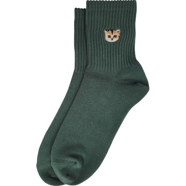 キュートなヌネットのフェイス刺繍が入ったミドル丈のアメリブソックス。どんなシーンにも合わせやすいシンプルなデザインなのでギフトにもおすすめです。