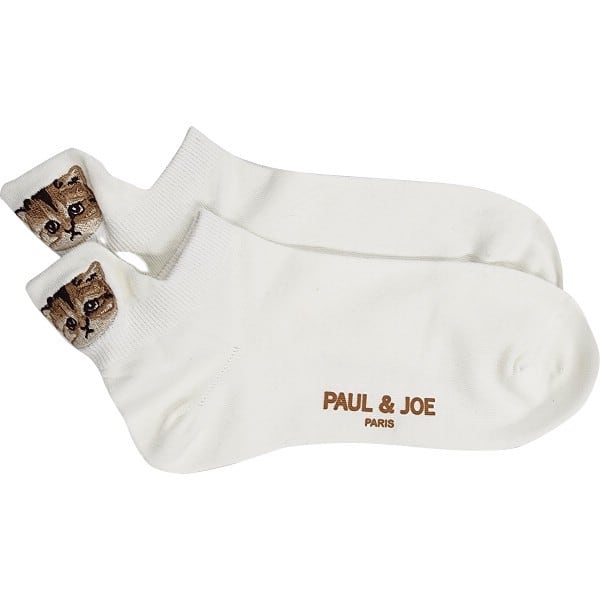 ポール&ジョー レディースアンクルソックス かかと刺繍 ホワイト
