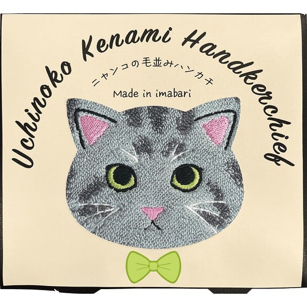 ニャンコの柄をデザインした、個性豊かなハンカチ。本場今治で。本物のような手触りを追求しました。お気に入りの「うちの子」と、毎日一緒に過ごしませんか。猫種ごとに使用すつ糸を変え、ニャンコの毛並みを表現しました。こちらを見つめる、かわいいニャンコの表情を刺繍しました。