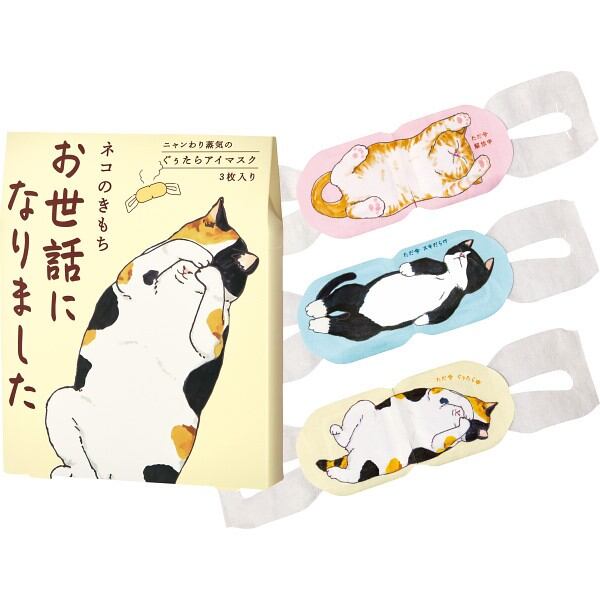 あったか心地よい蒸気で目と目元をじんわり温め、気分もほぐれるアロマタイプの温熱アイマスク。仕事やゲームなどでPC・スマホを使いすぎた時に。ほっとひと息つきたい時に。完全くつろぎモードのねこたちと一緒に、ぐぅたら気分でリラックスタイムを。