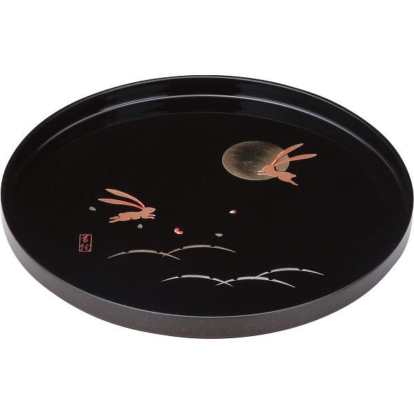 紀州塗 月とうさぎ 尺丸盆 黒 26501