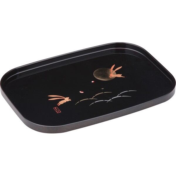 紀州塗 月とうさぎ 尺2長手盆 黒 26518