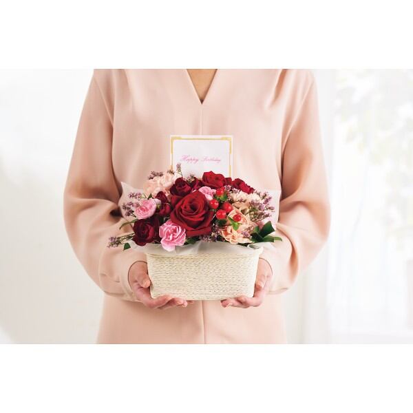 バースデーフラワー(生花アレンジ)(お名入れ) スィートレッド