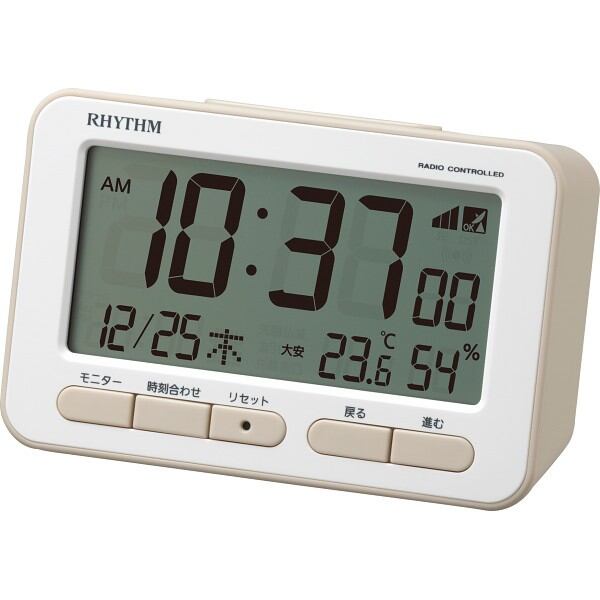 見やすい大きめの液晶と柔らかいフォルムが特徴の電波デジタルめざまし時計です。