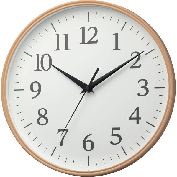 木目調風塗装の細枠形状と大きなゆとりある文字板で視認性とデザイン性を両立させた掛時計です。