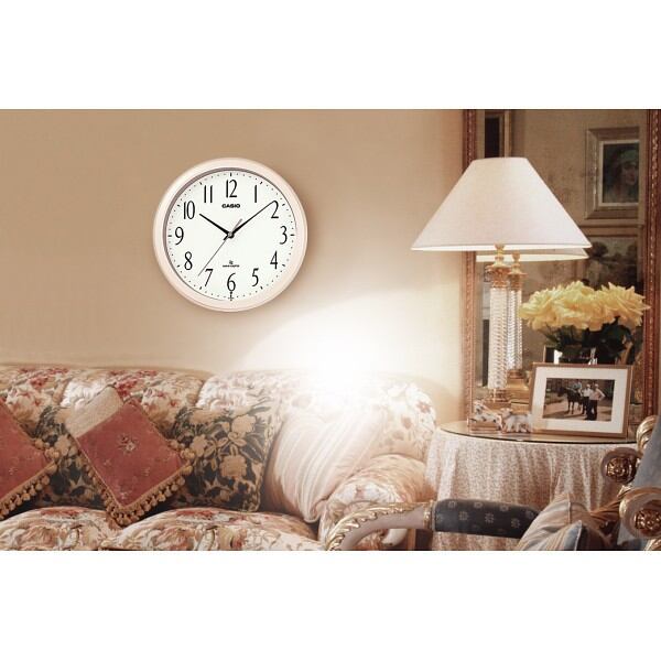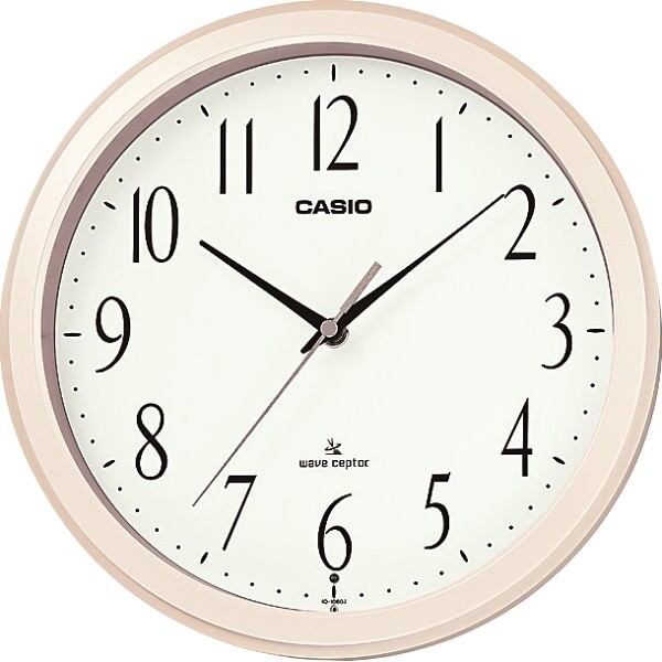 シンプルなデザインの壁掛け電波時計。スタイリッシュなパールホワイトの枠。
