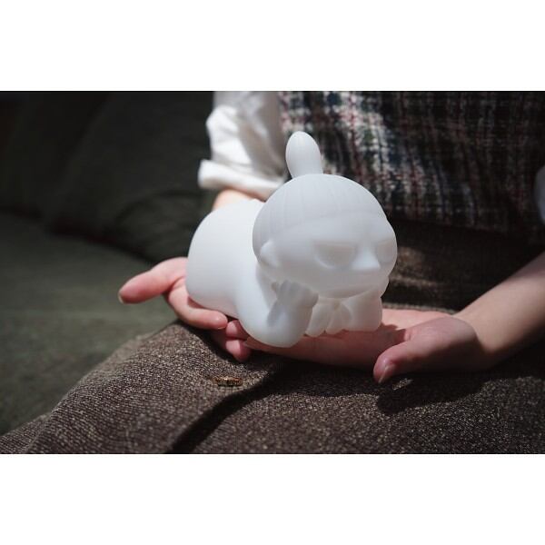 シリコーン樹脂製の柔らかい可愛らしいリトルミイのライト。シリコーン部分から底部メカボックスの取り外しができ、シリコーン部分を煮沸消毒することができます。ライトの明るさは3段階で調整ができ、振動センサーとスイッチ操作の2つのモードが内蔵されています。いずれのモードも30分でオートオフになり、消し忘れがないようになっています。お子様の枕元にぴったりの可愛らしいライトです。