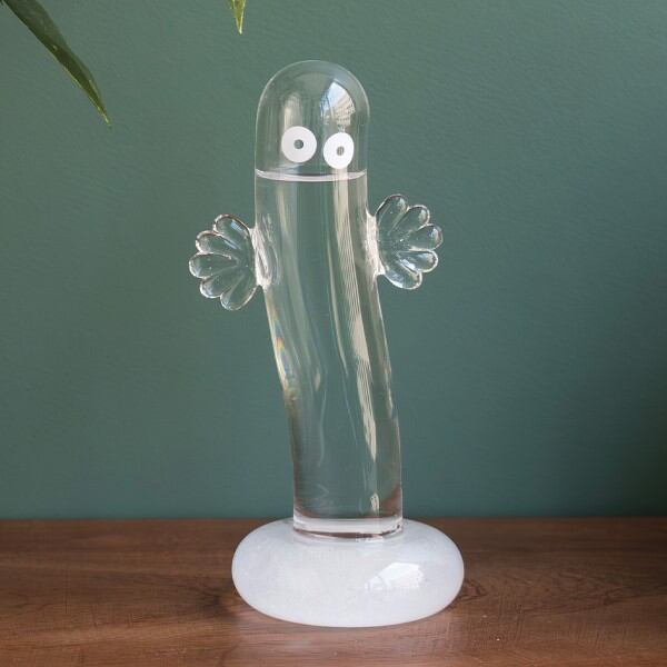 天気や気温などによって液体内の結晶がユニークに刻々と変化していくのを眺めて楽しめます。かわいらしいニョロニョロ型のデザインの自然派オブジェです。