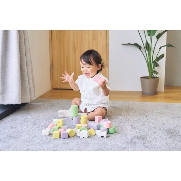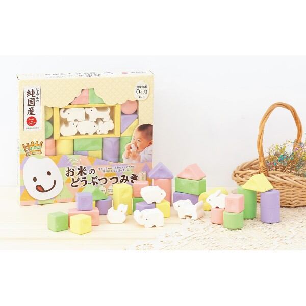 やわらか素材の「どうぶつ型つみき」が加わって、人気の「お米のつみき いろどり」がパワーアップ!白米色のどうぶつつみきは小さな手でも持ちやすいやわらか素材。