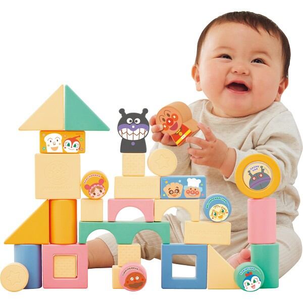 赤ちゃんにも持ちやすい形状や音が鳴るピース、やさしいカラーのお米からできたつみきです。アンパンマンとばいきんまんの形をしたつみきもあり、成長に合わせて長く遊べます。ギフト需要にもピッタリの商品です。