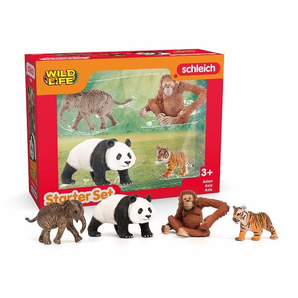 アジアに生息している動物、インド象(仔)・ジャイアントパンダ・オランウータン・トラ(仔)のセットです。