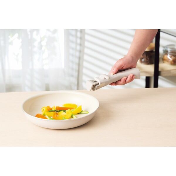 商品サイズ:●現品(18cm蓋付片手鍋)約19φ×7.8cm・本体重量=約440g、(24cm深型フライパン)約25.5φ×7cm・本体重量=約515g、(26cmフライパン)約27.5φ×5.6cm・本体重量=約472g、(ハンドル)約4.5×19×5cm