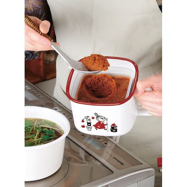 市販の750g味噌パックがピッタリ入り、密閉蓋で味噌の乾燥と酸化を防ぎます。本体は直火・IH・オーブンもOKだから保存容器以外の用途が広がります。