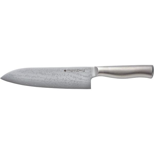 商品材料:●刀身=ダマスカス鋼(刃物用ステンレス鋼複合材37層・芯材VG10)、柄部=18−8ステンレス