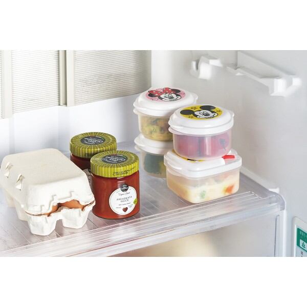 ミッキーとミニーがコミカルなレンジ容器。蓋をしたまま電子レンジにかけられるのでラップ不要です。