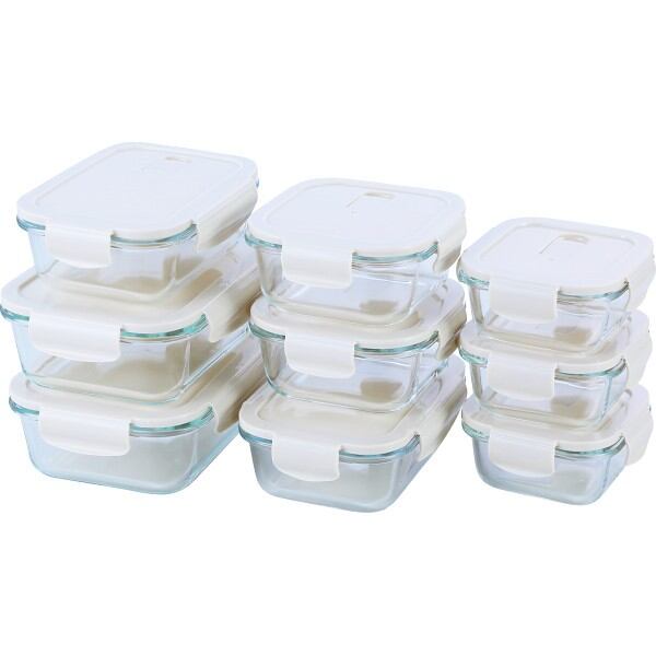 商品内容:●角型320ml(約12.1×12.1×5.8cm・320ml)×3、角型520ml(約14×14×6.4cm・520ml)×2、角型640ml(約17.7×13.5×6.2cm・640ml)×2、角型1.05l(約20.9×16×6.8cm・1.05l)×2●オーブンレンジ可(本体のみ)・電子レンジ可(本体、蓋)