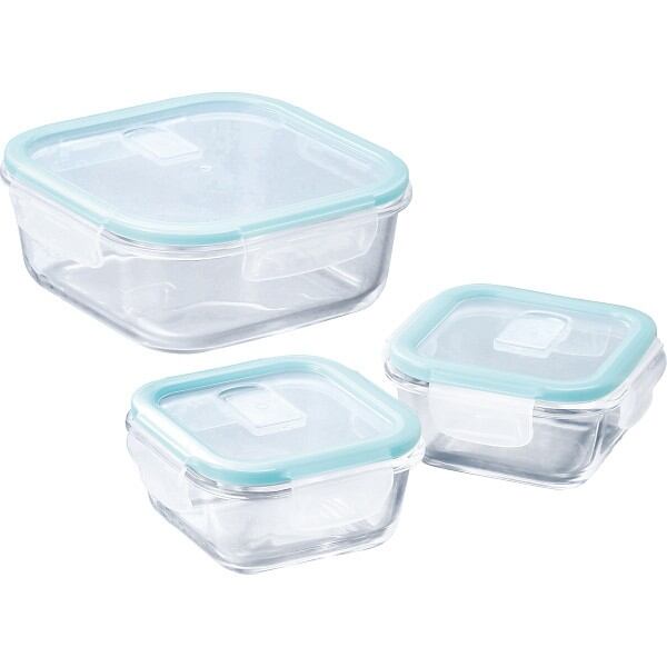 商品内容:●角型320ml(約11.7×11.7×5.9cm・320ml)×2、角型1.2l(約18.2×18.2×7.2cm・1.2l)×1●オーブンレンジ・電子レンジ可(本体のみ)