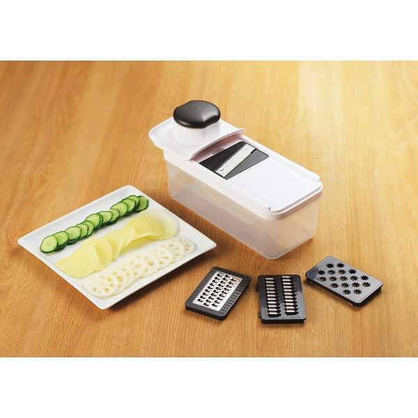 商品内容:●本体容器・スライサー・おろし・千切り・細切り・セーフティーホルダー×各1