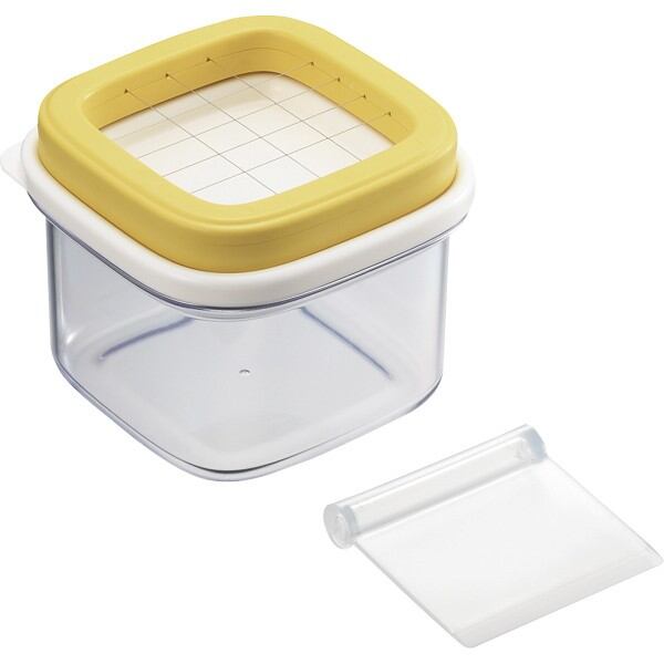 ギュッと一押しで約5gにカットでき、そのまま冷蔵庫にストックできます。お菓子作りやホームベーカリーの計量にとても便利!保存ケースはピタッと密閉できるフタで、バターが酸化しにくく、冷蔵庫に納まりやすいコンパクトサイズ。