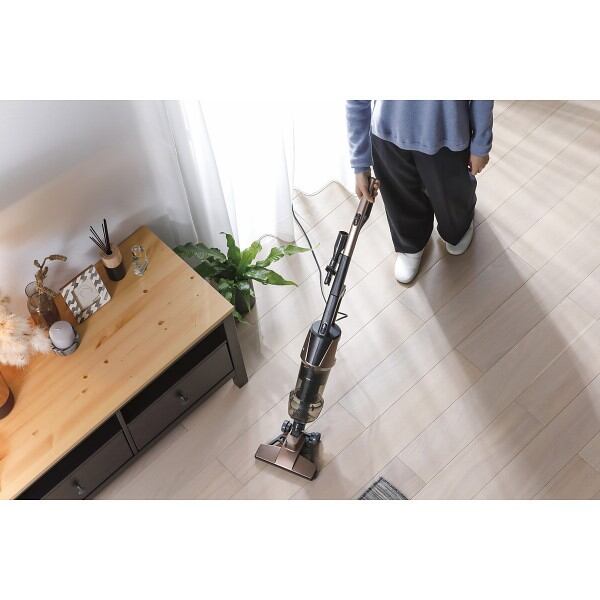■扱い易い本体重量約2.1kgの軽量設計。パワフル吸込仕事率100W。高速遠心分離サイクロンで吸込持続かつ紙パック不要。ハンディでもスティックでも手元で操作可能。2WAYで狭いところはハンドルを取り外し使用可能